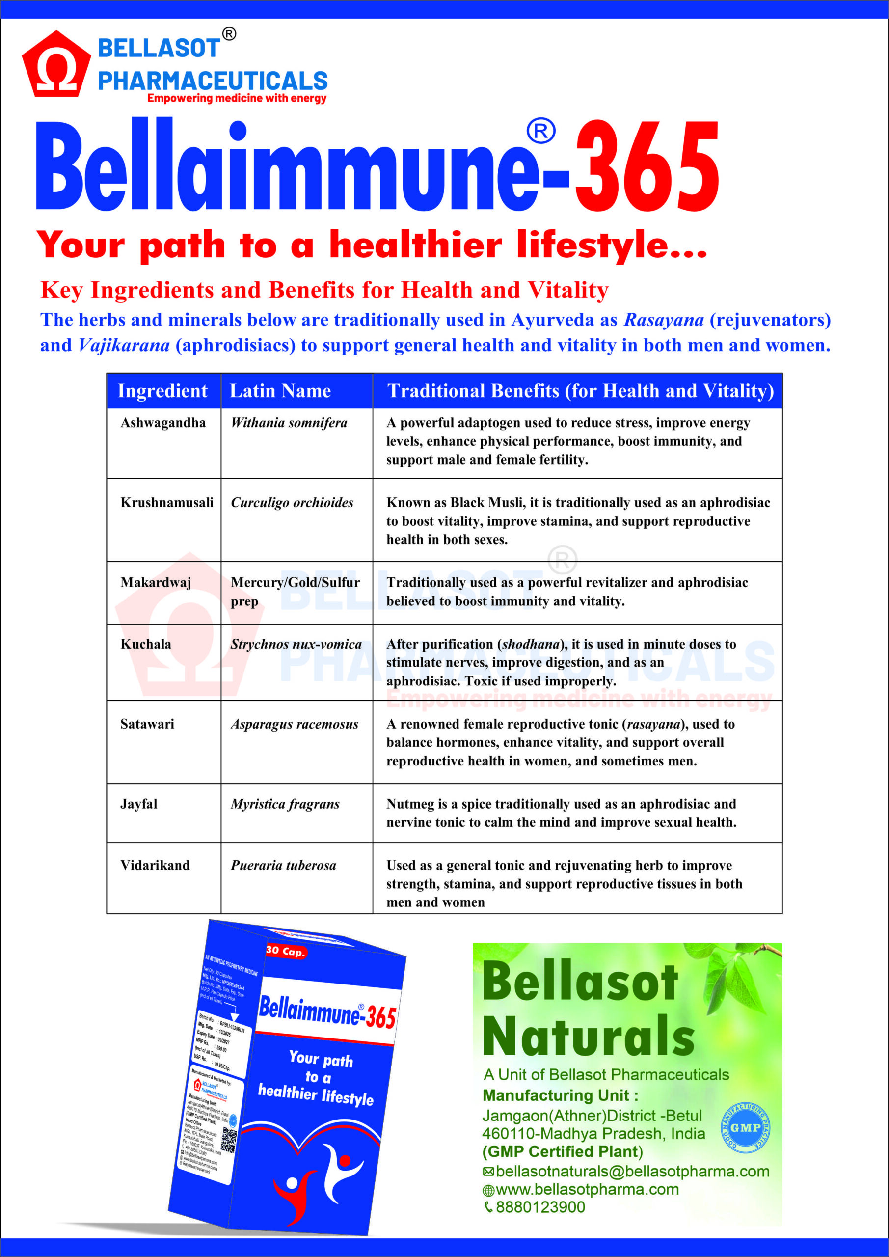 Ashwagandha (Withania somnifera) reduces stress, boosts energy, enhances performance, and supports fertility. Krushnamusali (Curculigo orchioides) improves stamina, vitality, and reproductive health.