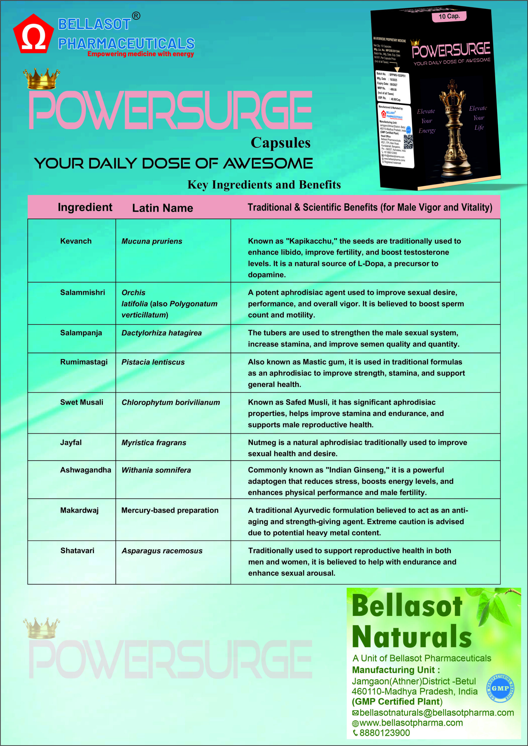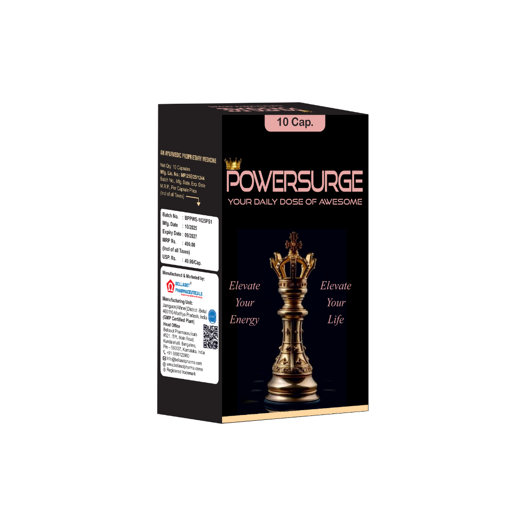 Experience renewed energy, vitality, and overall wellness with Powersurge Capsules. This Ayurvedic formulation is crafted using time-tested herbs known for supporting stamina, vigor, and general rejuvenation. Perfect for those looking to elevate their daily performance naturally.